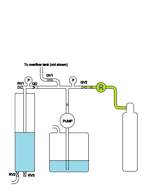 The problem with this pump is that is really pulses, the flow is not smooth so hoses jump around and do unpredictable things.  I mounted the pump to a 3 hp roll around aircompressor and added a remote dead man switch activated valve to turn the pump on/off.  I also changed the loading procedure form opening the top of the tank to having a separate valve and a hard connection on the bottom for fueling, no ladders involved. These changes mostly worked as designed and I'm happy with them. much less risk drama in oxidizer loading.  I need to do something similar for the fuel side and will do so.  I still have hope that I can find a good steady electric self priming oxidizer pump..... I've ordered a couple of candidates, we will see how they turn out.